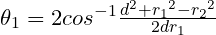 t1 = acos((d * d + r1 * r1 - r2 * r2) / (d * r1 * 2.0)) * 2.0;