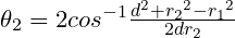t2 = acos((d * d + r2 * r2 - r1 * r1) / (d * r2 * 2.0)) * 2.0;