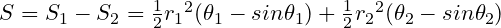 result = (t1 * r1 * r1 + t2 * r2 * r2 - r1 * r1 * sin(t1) - r2 * r2 * sin(t2)) * 0.5;