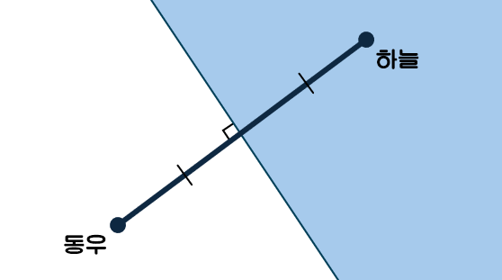 처음에 동우와 하늘이는 서로 다른 위치에 있으므로, 또는 이다.
